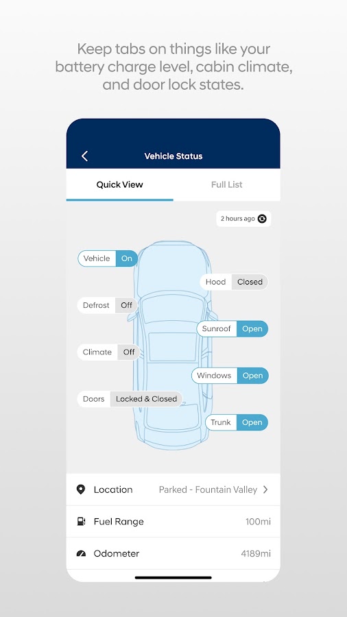 • Проверка статуса автомобиля (поддерживается на некоторых автомобилях 2015MY+)