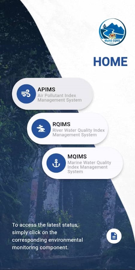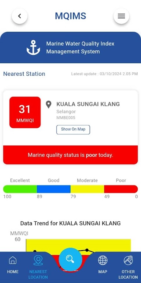 MyJAS EQMS — это более улучшенная версия последней версии MyIPU, служащая единым источником всех обновлений о последнем состоянии качества окружающей среды в Малайзии, полученных от станций непрерывного мониторинга качества воздуха, станций непрерывного мониторинга качества рек, станций ручного мониторинга качества рек и Ручные морские станции мониторинга качества.