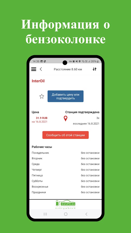 Скачайте приложение myLPG.eu для Android бесплатно - последняя версия (4.6) уже доступна для установки на ваш телефон или планшет.