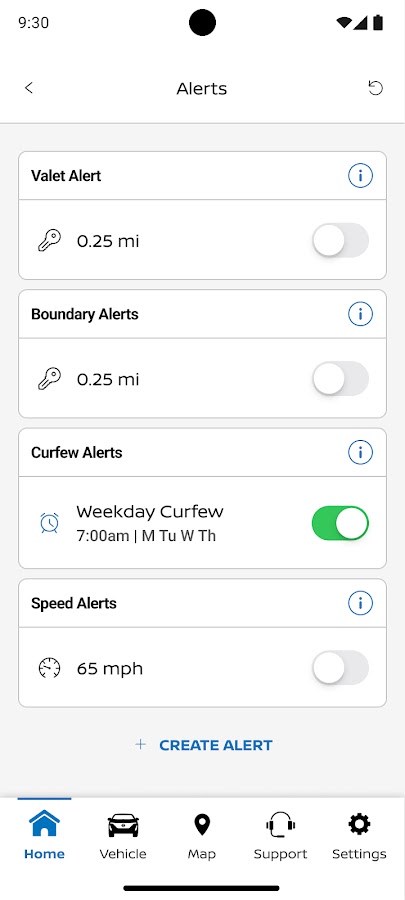 • Следите за состоянием своего автомобиля с помощью настраиваемых предупреждений о границах, скорости и комендантском часе***.