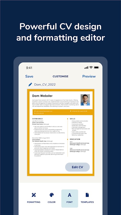 Создайте профессионально выглядящее резюме без необходимости обладать навыками дизайна. Мощное приложение для создания резюме My Perfect CV позволяет настраивать ваше резюме с помощью удобных и интуитивно понятных элементов управления.