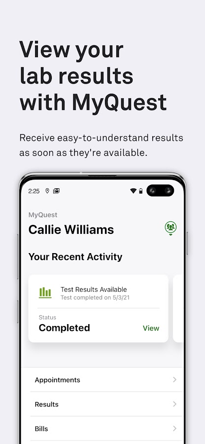 С приложением MyQuest от Quest Diagnostics все результаты лабораторных анализов и записи на приемы всегда у вас под рукой — так что у вас есть информация, необходимая для поддержания здоровья: