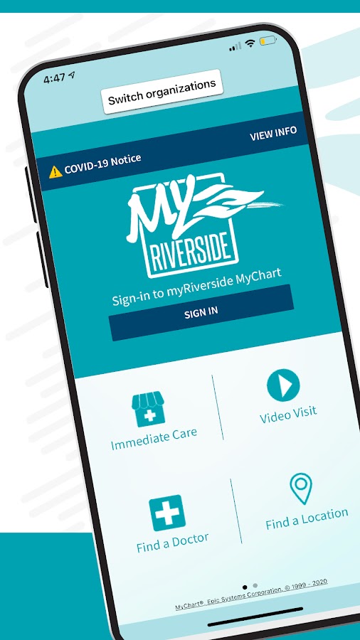 Бесплатное приложение myRiverside предоставляет подробную информацию о местах расположения, услугах, времени ожидания неотложной помощи, маршрутах и многом другом.