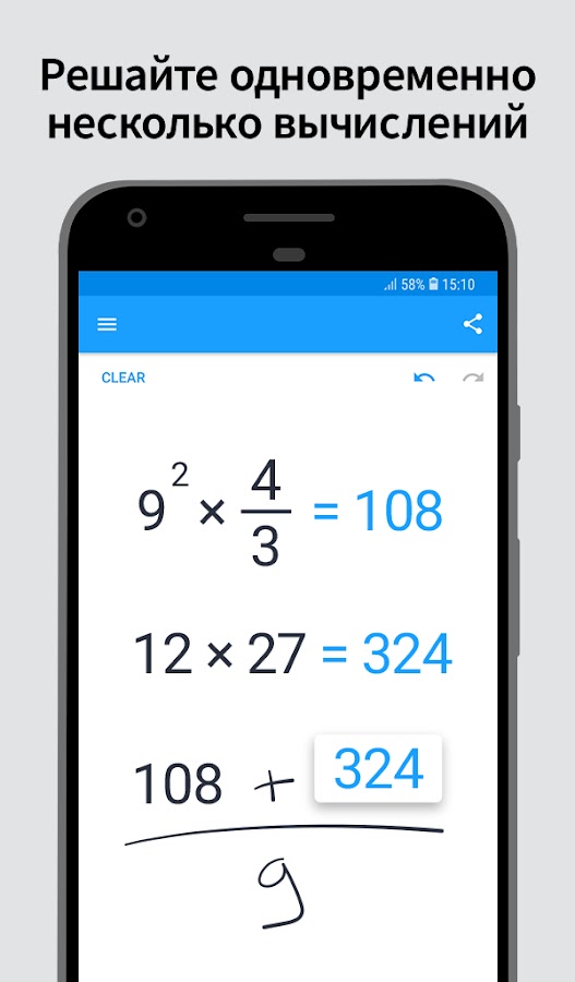 • Поддержка нескольких строк: продолжайте запись вычисления на следующей строке или записывайте разные вычисления на разных строках.