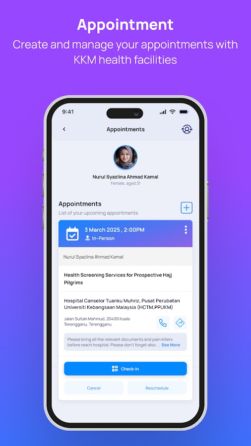 Медицинские услуги: MySejahtera расширяет свои возможности, предоставляя пользователям легкий доступ к медицинским услугам. Он предоставляет информацию о близлежащих медицинских учреждениях, позволяет пользователям записываться на прием к поставщикам медицинских услуг и предлагает платформу для цифровых медицинских записей. Это обеспечивает бесперебойную и эффективную медицинскую помощь.