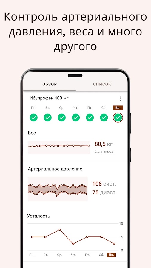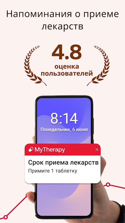 MyTherapy — это бесплатное, отмеченное наградами приложение для напоминаний о приёме лекарств. Оно включает в себя ряд таких достоинств, как напоминания о приёме лекарств, отслеживание перепадов настроения, журнал состояния здоровья, график изменения веса и многое другое. Приложение позволит Вам и Вашему врачу успешно выстроить программу лечения.