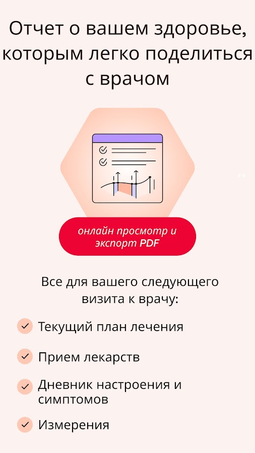 • Журнал приёма таблеток, дозировок, отслеживание измерений, физических упражнений и посещений врача