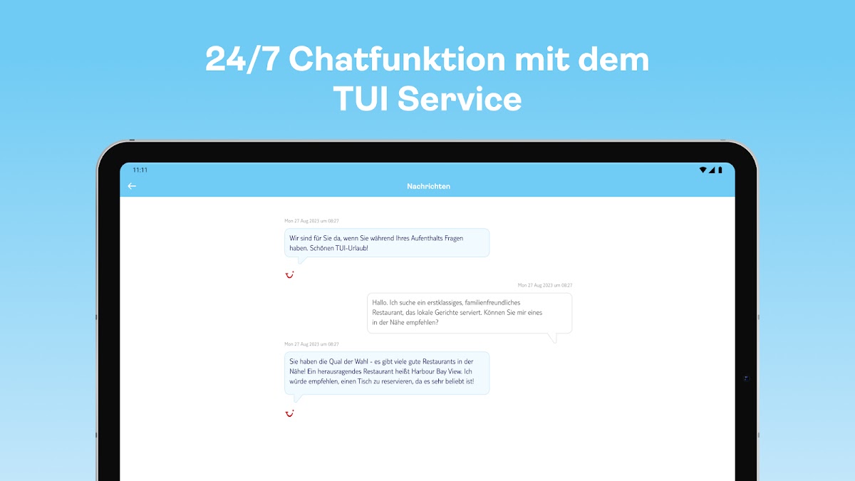 С приложением myTUI у вас всегда под рукой вся информация об отдыхе – будь то проверка времени рейсов, отслеживание трансферов или быстрое бронирование экскурсии. Больше никакого стресса из-за бумажной работы или пропущенных обновлений: приложение всегда держит вас в курсе событий и позволяет легко, быстро и непринужденно планировать отпуск. Идеально подходит для тех, кто хочет путешествовать с умом! 🌍📲
