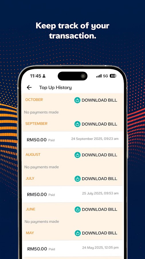Получите все услуги U Mobile под рукой — проверяйте свои счета и выписки, просматривайте историю пополнения, отслеживайте использование и обходитесь безналичным расчетом, оплачивая счета или пополняя счет через приложение.