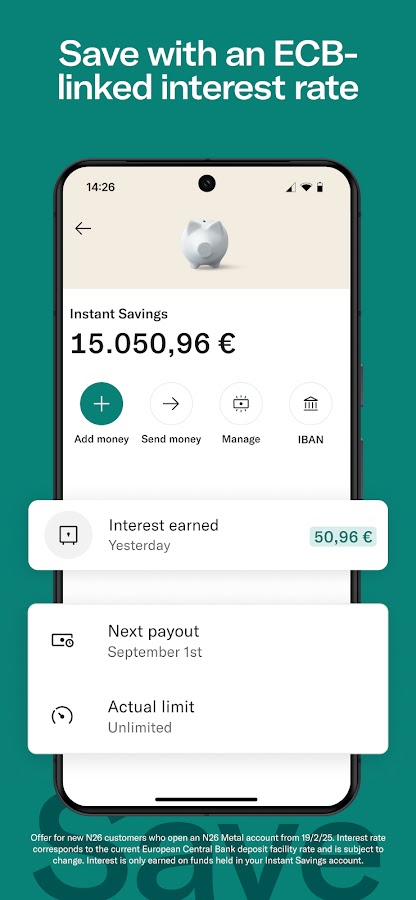 – Получайте самую высокую процентную ставку, привязанную к ЕЦБ, с N26 Metal.***