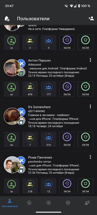 👉 Уведомления о действиях выбранных пользователей VK(ВКонтакте), вне зависимости от наличия пользователя в списке твоих друзей.