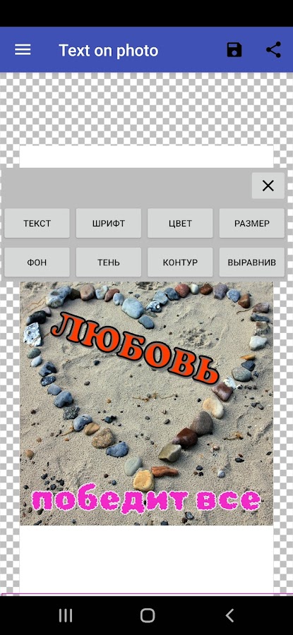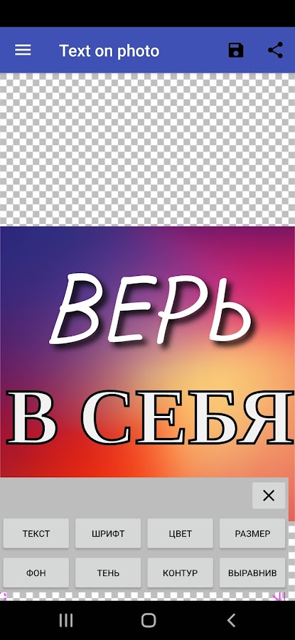 Версия 1.0.4: Добавлена возможность «контур текста» — с ним буквы выглядят более контрастнее, а текст лучше читается.