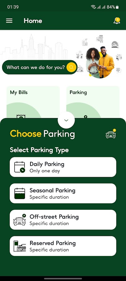• УСЛУГИ ПАРКОВКИ: позволяет оплачивать ежедневную, сезонную парковку и парковку во дворе, используя различные каналы оплаты, а также подавать заявку на зарезервированную парковку.