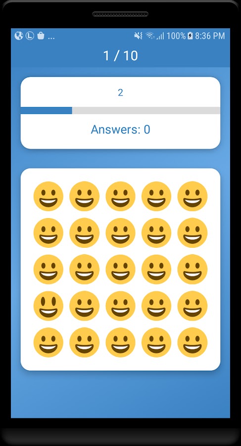 Игра состоит в том, чтобы найти разные эмодзи. Есть 9 верхних уровней, и каждый верхний уровень имеет 10 уровней с смайликами.