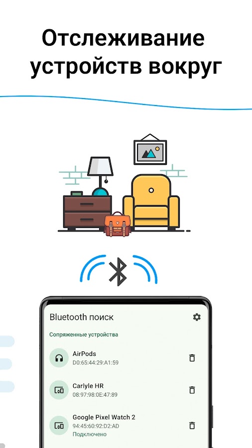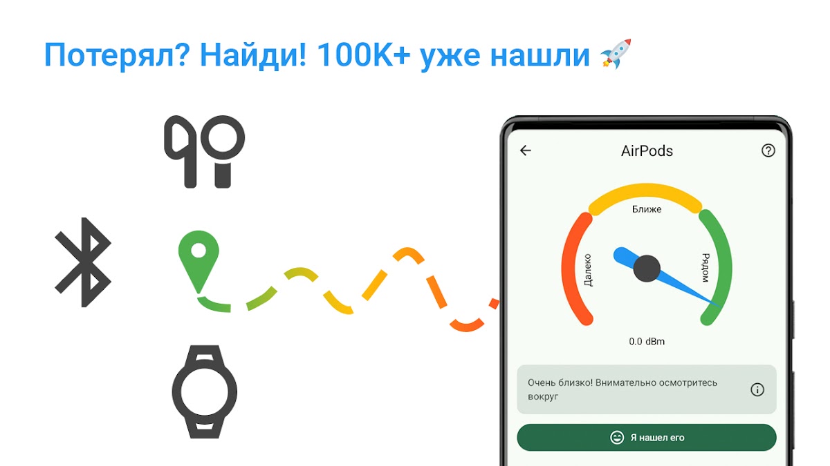 ✓ Найти мое устройство Bluetooth: Быстро найдите свои потерянные устройства Bluetooth, включая смарт-часы, наушники, AirPods, трекеры FitBit и многое другое.