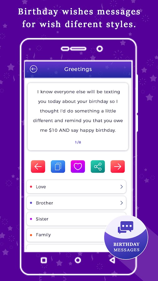 Отправить или Отправить сообщение День рождения через это приложение.