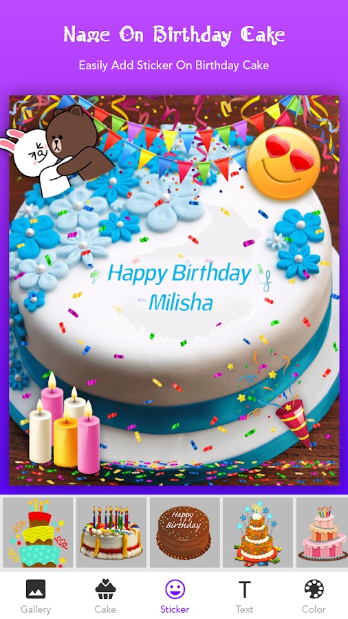 Name On Birthday Cake — это удивительное приложение, которое позволяет вам пожелать красивый торт ко дню рождения, написав имя своих друзей в рамках поздравительной открытки в желаемый день рождения.