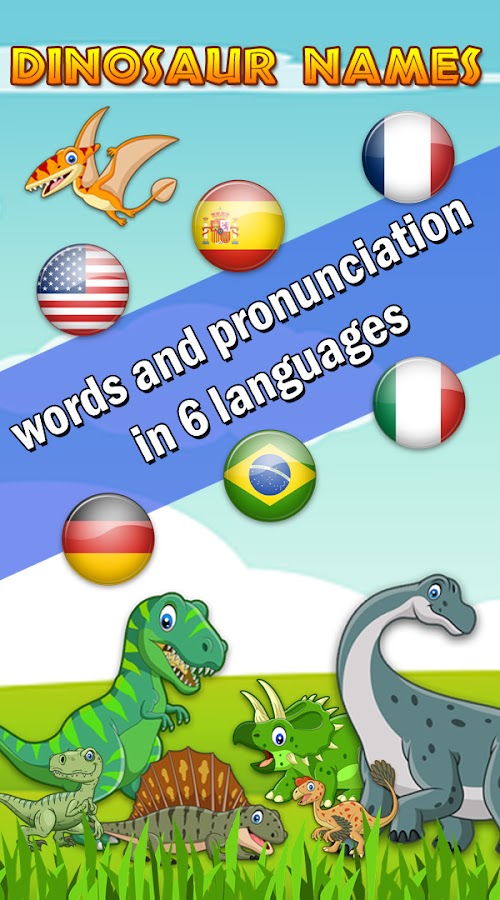 С помощью этого приложения вы узнаете имена динозавров на 6 разных языках, вы можете услышать их имена на английском, французском, немецком, испанском, португальском и итальянском языках. Как только вы их узнаете, вы можете проверить свои знания, играя, чтобы определить динозавра по его имени. Сможете ли вы угадать их всех?