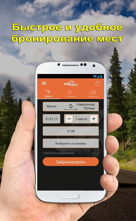 Данное приложение разработано для быстрого и удобного бронирования мест на маршрутку Новополоцк Полоцк Минск или Минск Полоцк Новополоцк