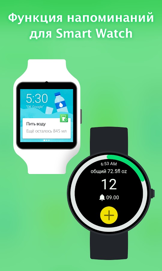 Получайте напоминания, просматривайте прогресс и добавляйте чашки прямо на свои устройства Wear OS.