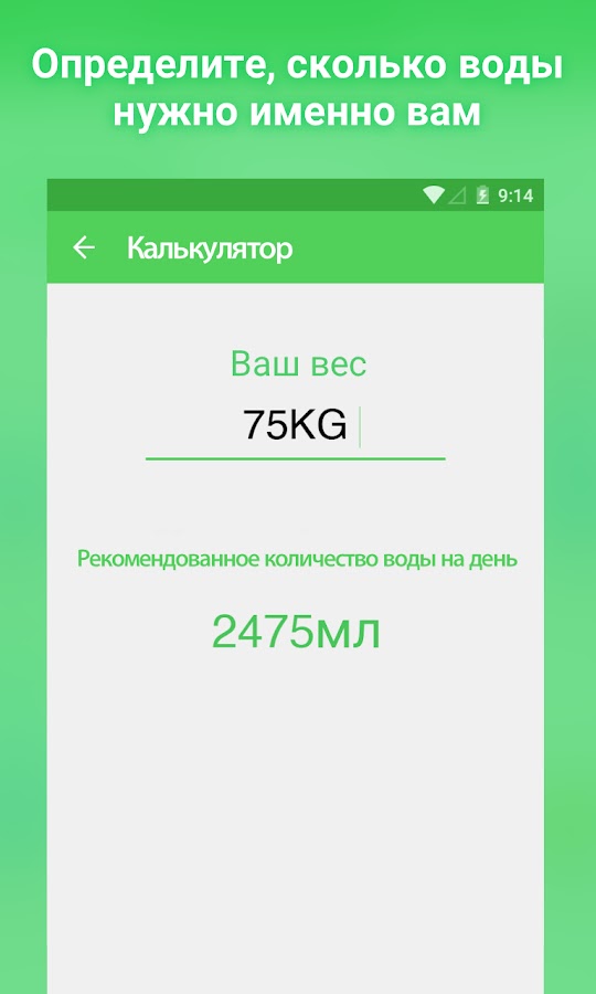 Вам нужно всего лишь ввести ваш текущий вес и это приложение поможет вам определить, сколько воды необходимо вашему телу каждый день. Закончив пить чашку воды, вам необходимо добавить её в приложении. Программа запомнит её объем.