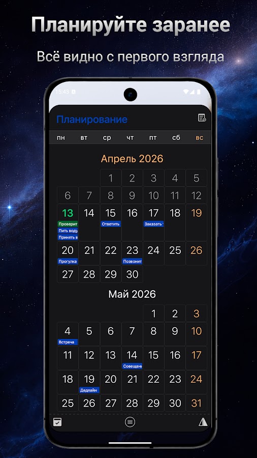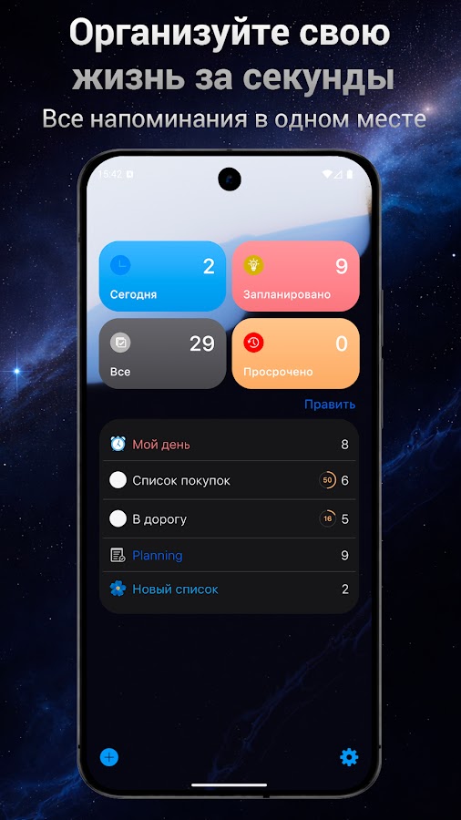 Создавайте напоминания за секунды, управляйте повседневными задачами, планируйте списки покупок, не забывайте о днях рождения и перезванивайте по пропущенным вызовам.