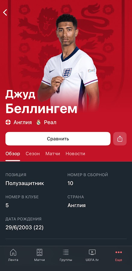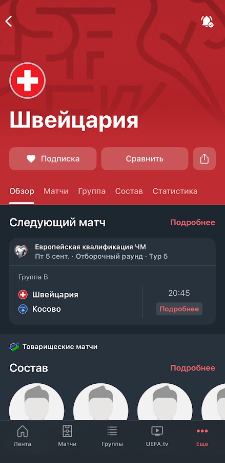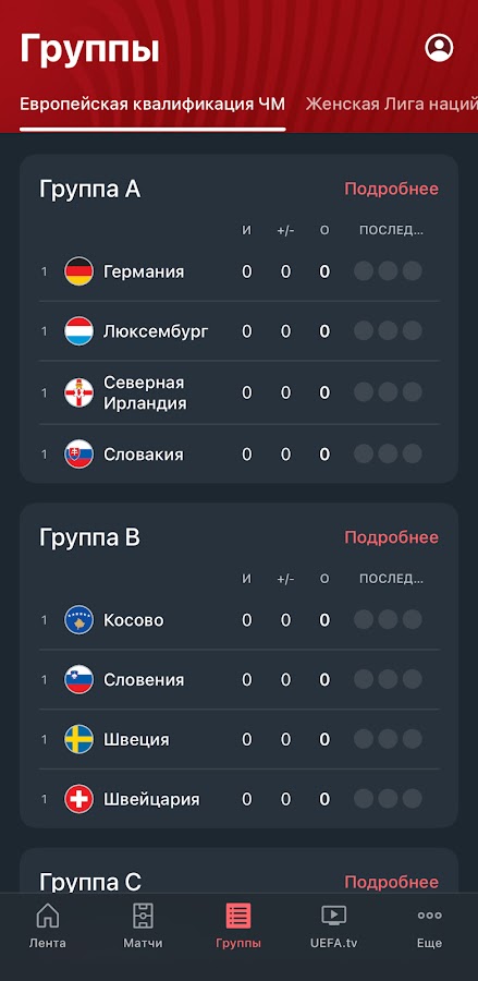 Следи за европейским футболом среди сборных в официальном приложении! Это твой путеводитель по Лиге наций УЕФА, Европейской квалификации ЧМ-2026, женской Лиге наций УЕФА и квалификации ЧМ-2027, а также на пути к ЕВРО-2028!