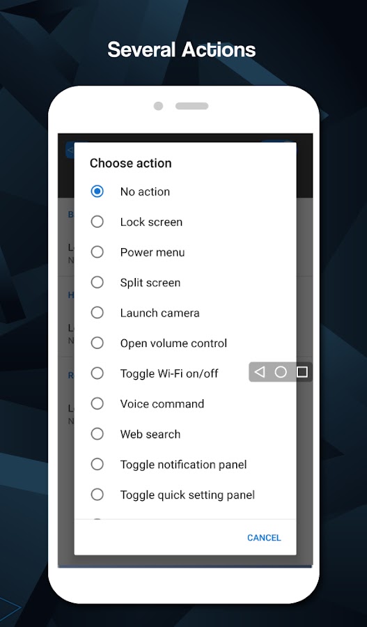 Включив службу, приложение будет поддерживать команды для нажатия и длительного нажатия со следующими функциями:
