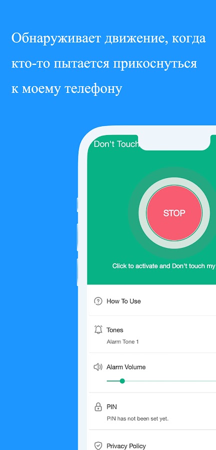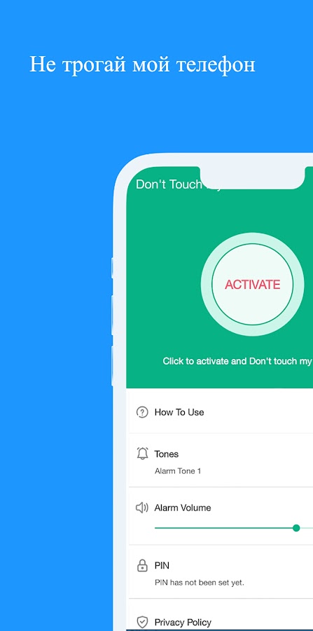 Если кто-то хочет прикоснуться к моему телефону или ваши дети или члены семьи хотят воспользоваться вашим мобильным телефоном, когда вас нет рядом. Приложение «Не трогай мой телефон: Противоугонная сигнализация» защитит ваш телефон и позволит вам узнать, кто прикоснулся к моему телефону. С приложением «Не трогай мой телефон» вы не будете бояться положить свой телефон куда угодно.