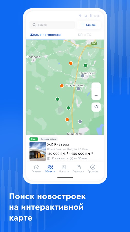 • Интерактивная карта всех новостроек с возможностью отфильтровать объекты под ваш запрос.
