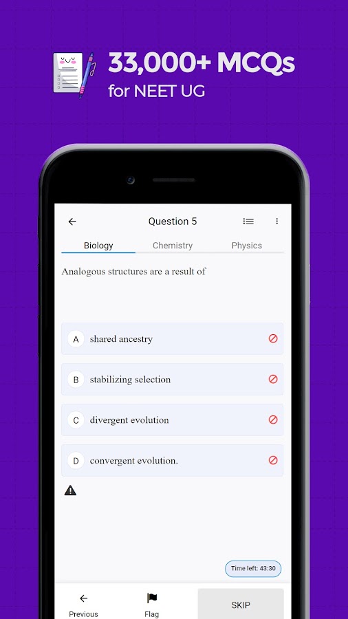 Закрепите все понятия по физике, химии и биологии с помощью крупнейшего банка вопросов NEET, соответствующего актуальной программе NTA.