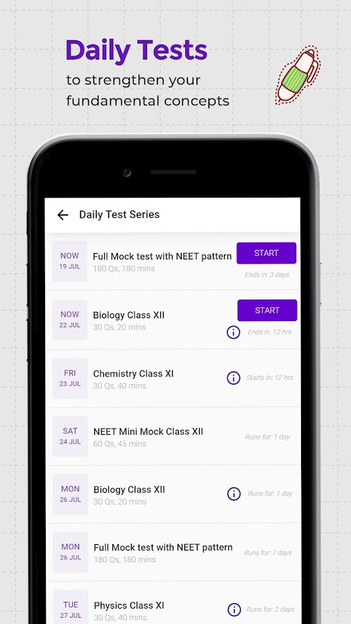 Проходите ежедневные онлайн-тесты, разработанные на основе прошлых тенденций NEET, мгновенно получайте рейтинг и отслеживайте свой прогресс по сравнению с другими претендентами.