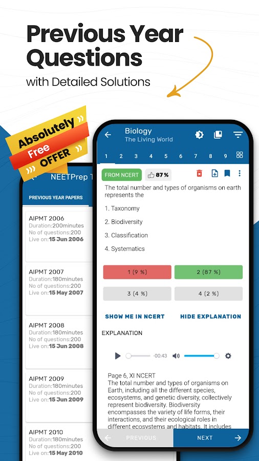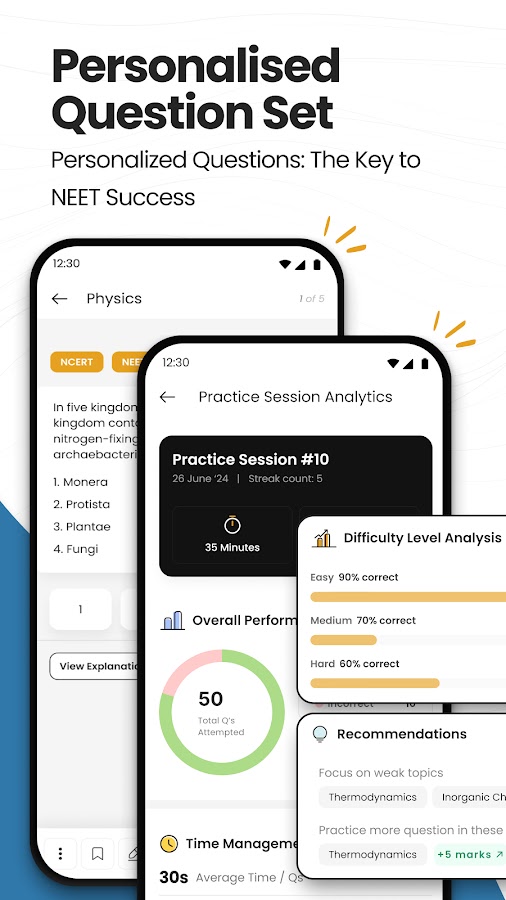 — Практика MCQ банка вопросов NEET с вопросами NCERT, вопросами прошлого года и выделением важных вопросов.
