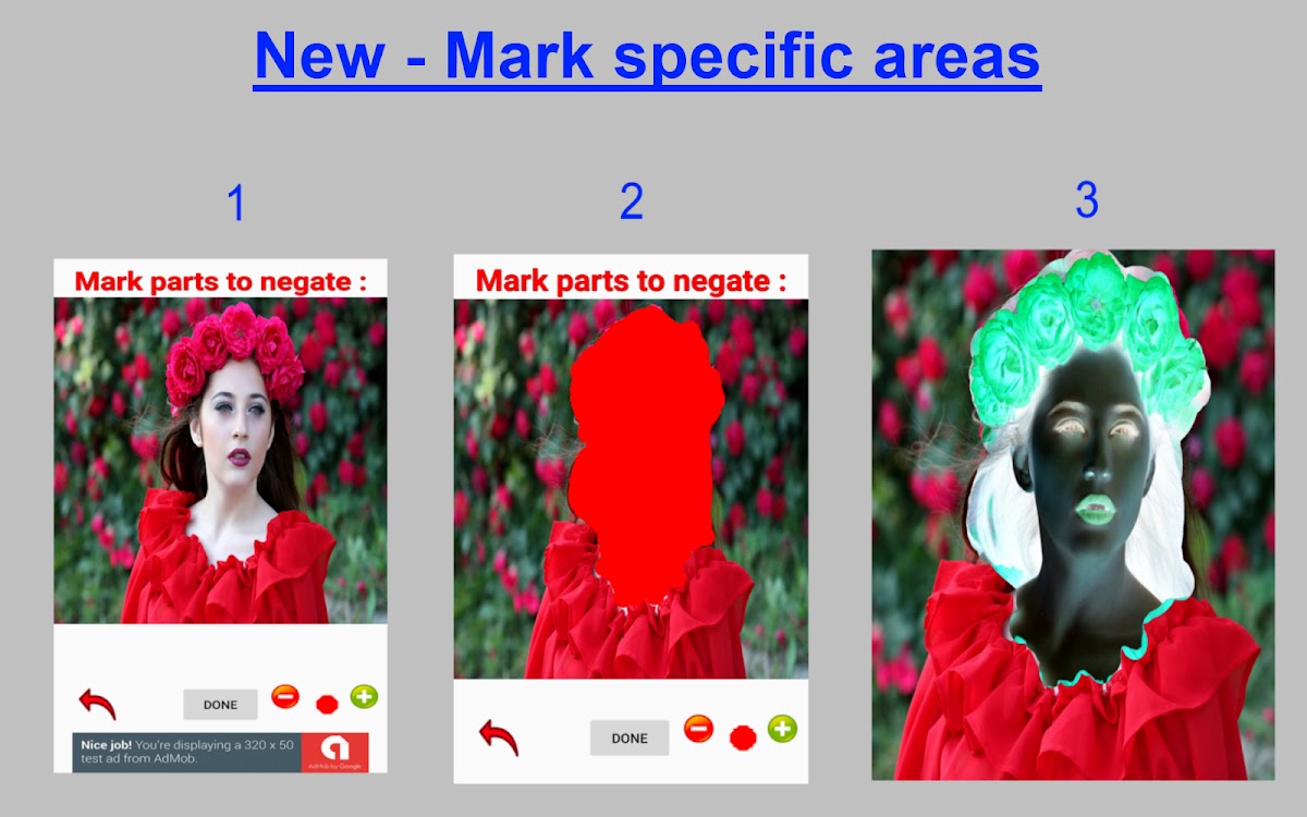 С Негатив изображения вы можете инвертировать все цвета изображения, увидеть реальную фотографию из старой негативной пленки камеры или сделать ваши фотографии выглядят смешно или страшно.