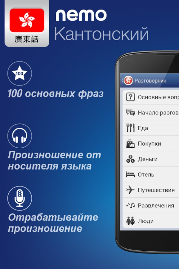 Скачайте приложение Кантонский с Nemo для Android бесплатно - последняя версия (1.7.1) уже доступна для установки на ваш телефон или планшет.