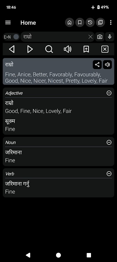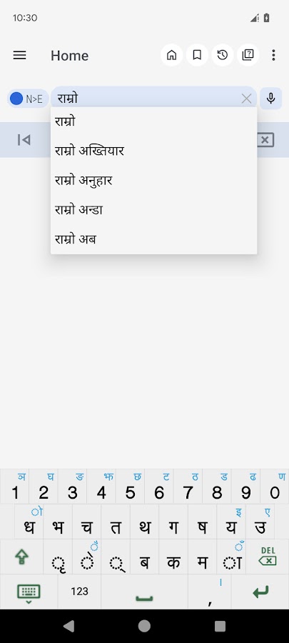 • Двусторонний поиск: плавное переключение между переводом с непальского на английский и с английского на непальский языки.