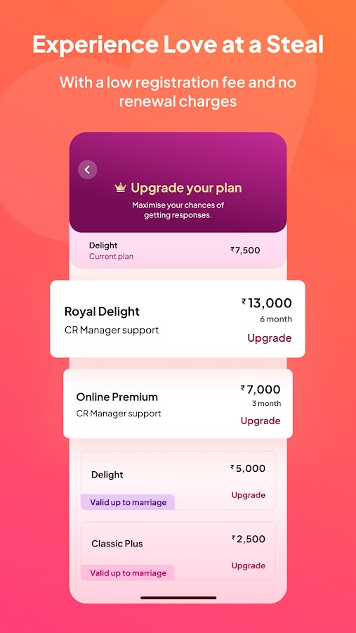 Испытайте супружеские услуги, как никогда раньше, с привилегированными услугами. От персональных консультантов до выделенных профилей на веб-сайтах, проверенных соответствующих профилей и премиальных объявлений в нашем журнале: на Nestmatrimony.com ваша история любви получит королевское признание. лечение, которого оно заслуживает.