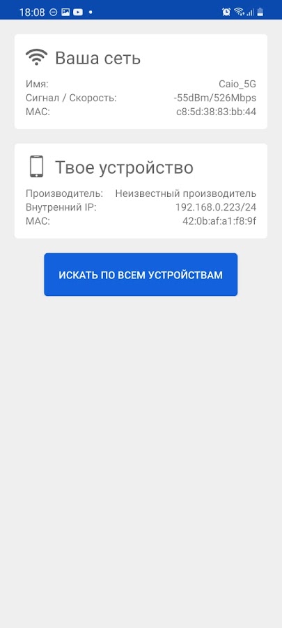 Приложение также предоставляет информацию о вашей сети, такую как скорость, мощность сигнала Wi-Fi, имя маршрутизатора и MAC.