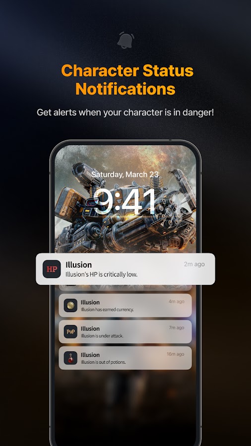 ▣ Используйте уведомления о статусе персонажа, чтобы быстро реагировать на возникающий игровой процесс!