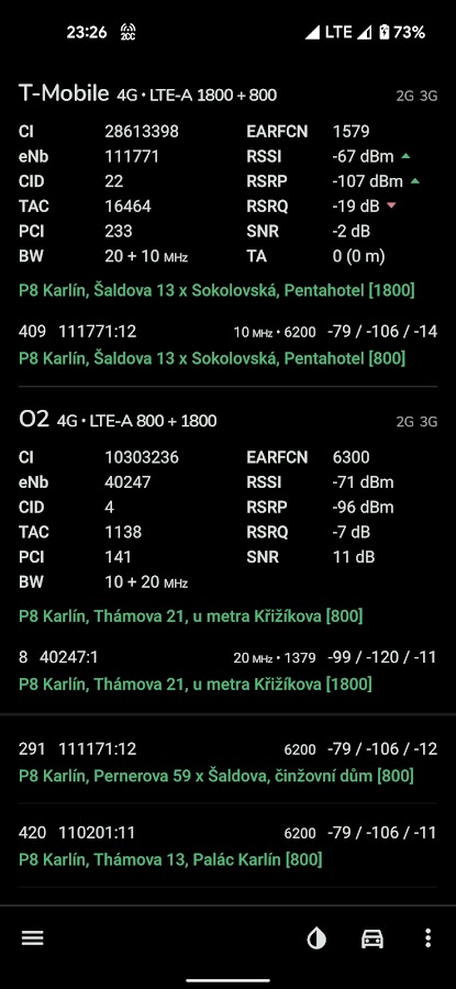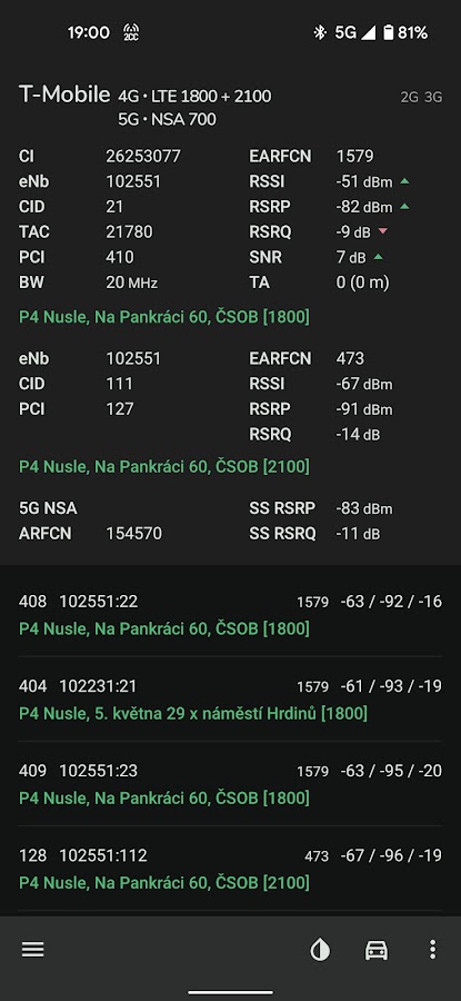 Поддерживаемые сети: GSM, CDMA, WCDMA, TD-SCDMA, 4G LTE, 5G NSA и 5G SA. Когда дело доходит до LTE, NetMonster также обнаруживает агрегированные несущие (так называемые LTE-Advanced). В регионах, где доступно 5G NSA, вы можете увидеть, используется ли NSA или оно только что развернуто, также доступна агрегация операторов связи в 4G+5G NSA.