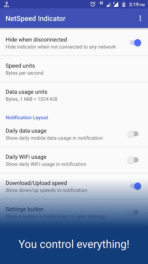 Вы можете настроить почти все, что хотите. Легко показать и скрыть индикатор, если это необходимо. Решите для себя, где вы хотите показать индикатор в строке состояния, должен ли он отображаться на экране блокировки или вы хотите использовать байты в секунду (например, кбит/с) или биты в секунду (например, кбит/с) для отображения скорости.