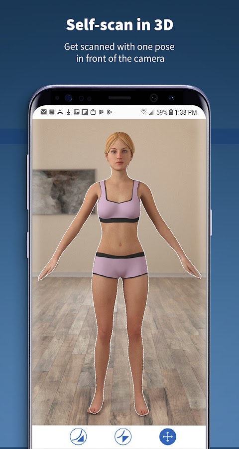 Сделайте только одну позу перед камерой устройства, чтобы получить точный трехмерный аватар со всеми измерениями тела.