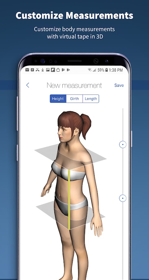 — Измерь свое тело. Неттело вычисляет размеры тела автоматически. Вы можете просматривать результаты в 3D и настраивать, как каждое измерение проводится непосредственно на вашем 3D теле с помощью виртуальной ленты.