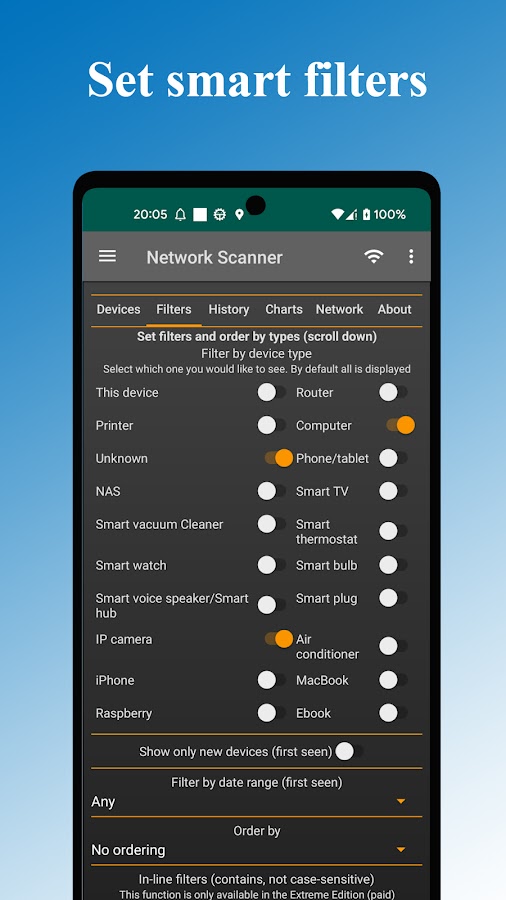 Находите все подключенные к вашей сети WiFi устройства, выявляйте незнакомые устройства, скрытые камеры
