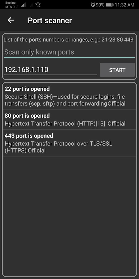 Приложение найдет все хосты в вашей домашней сети или в выбранном диапазоне IP. Может использоваться не только для того, чтобы узнать, кто пользуется вашим Wi-Fi, и узнать больше о каждом устройстве, но и для профессиональных задач: динамическое сканирование портов и возможность фильтрации хостов по открытым портам позволяет найти нужный сервер в сети. Сканер IP поддерживает 4 режима сканирования — arp read, icmp ping, udp ping, dns request. Также вы можете вручную выбрать используемый DNS-сервер для сканирования ваших частных сетей. Это лишь малая часть возможностей данного сетевого сканера.