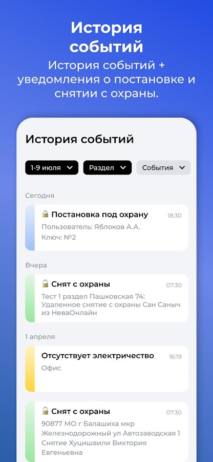 — Осуществлять круглосуточный мониторинг статуса ваших охраняемых объектов