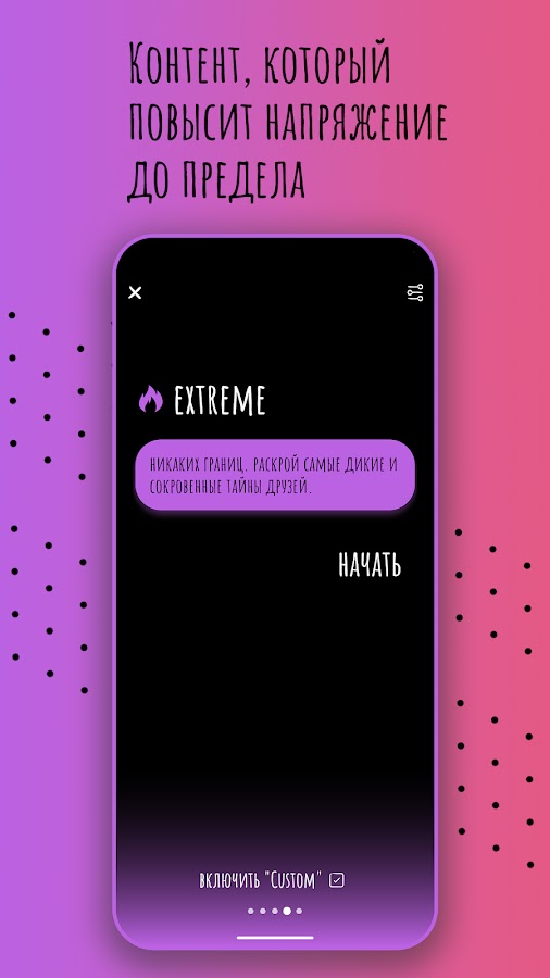Здесь есть тысячи классных и горячих вопросов, а также различные задания, чтобы разогреть вечеринку в компании или пару! Вы узнаете в этой игре все что было или не было, без цензуры и без ограничений!