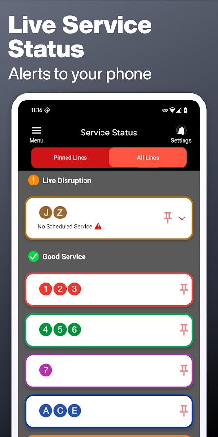 Статус услуги от MTA показывает оперативную информацию о задержках с оповещениями, отправляемыми прямо на ваш телефон.*