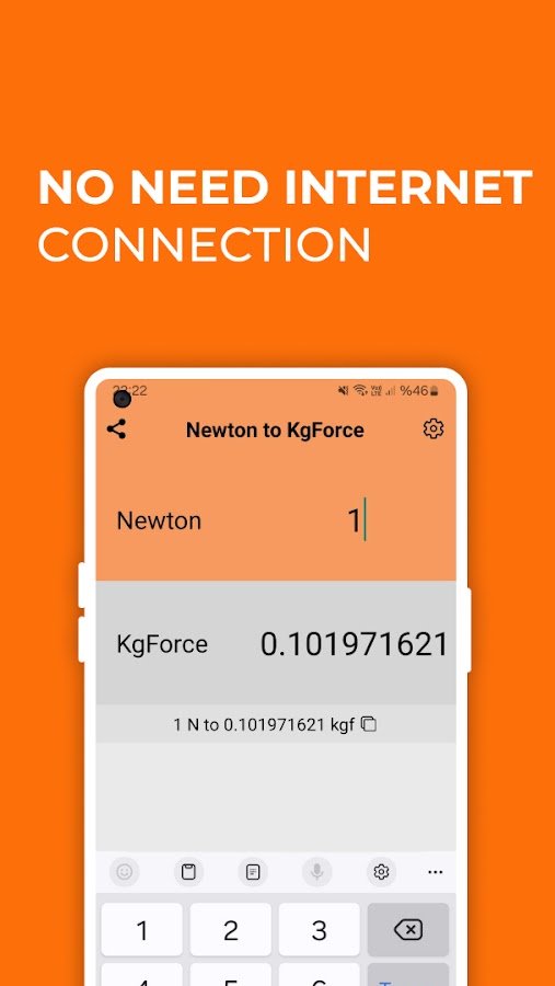 ⚡ **Упрощенное преобразование килограмм-силы в ньютоны.** Преобразование килограмм-силы в ньютоны никогда не было таким простым. Позвольте нашему приложению выполнить расчет быстро и точно.