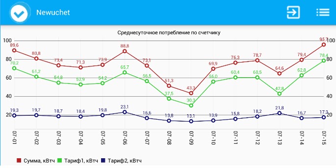 Просмотр показаний по счетчикам Матрица, доступным на сайте data.newuchet.ru. Newuchet позволяет проанализировать потребление электроэнергии за сутки, неделю, месяц, год, а также определить сумму к оплате за произвольный период и построить наглядный график.
